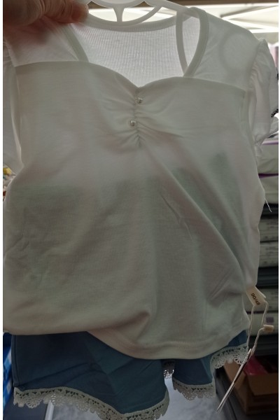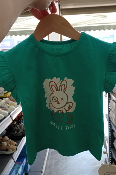 手绘兔子弹力棉半袖T恤X23N31052A 6921436291890